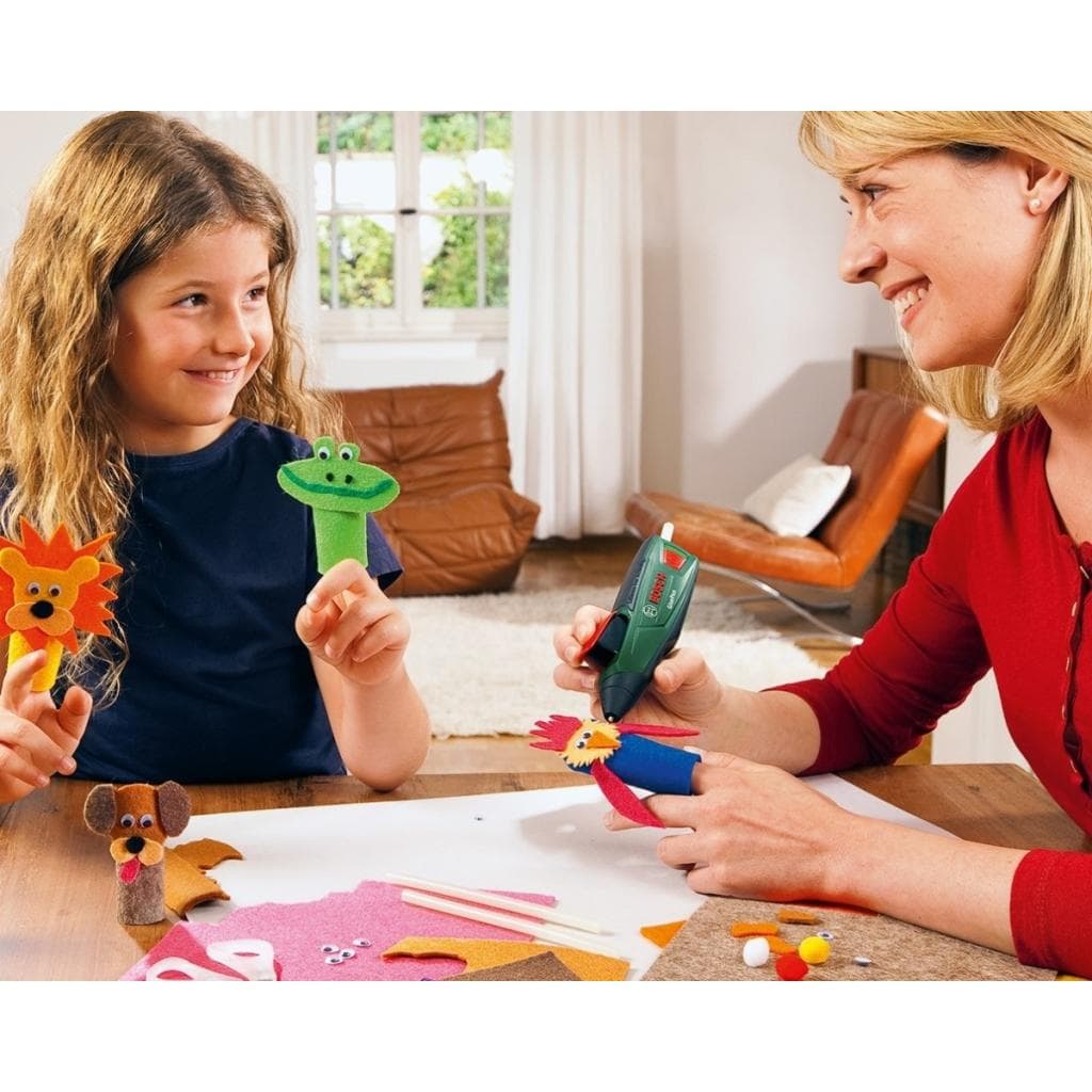 Час розігріву - 15 секунд, максимальна робоча температура - 170 °C, довжина клейового стрижня - 150 мм