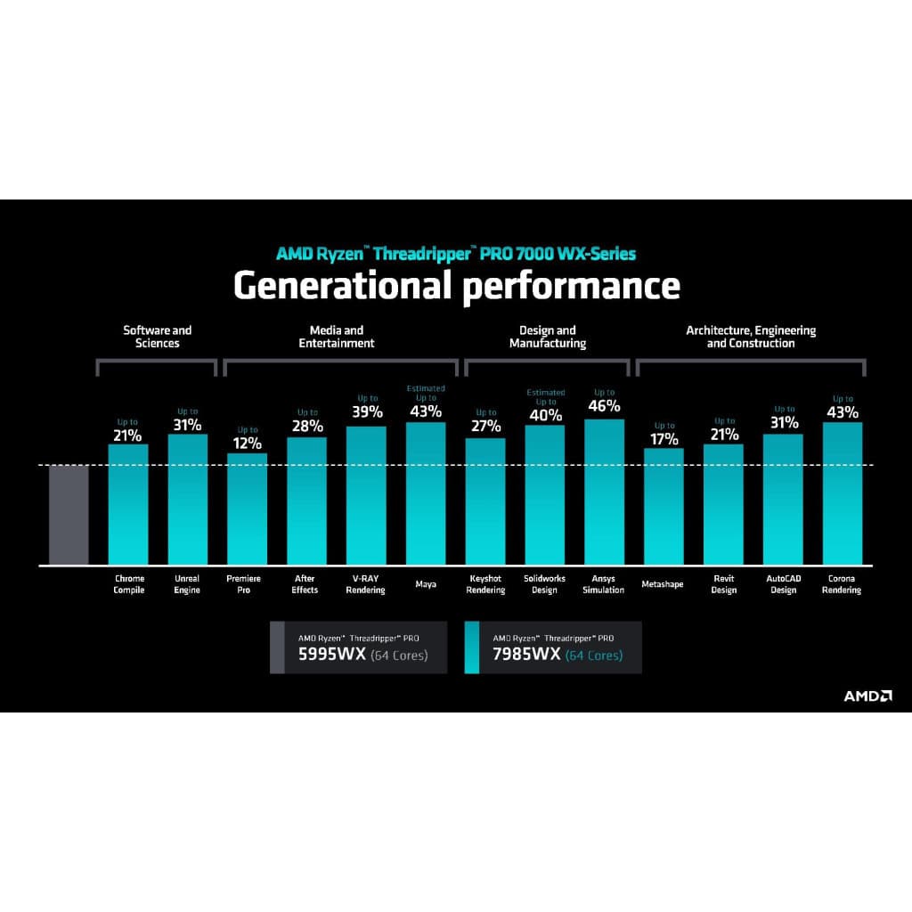 TR5, 32 ядра, 64 потоки, 4.0 GHz, 5.3 GHz, Максимальний TDP - 350 Вт, 5nm, L1: 2MB, L2: 32MB, L3: 128MB, немає, AMD Zen 4, BOX без кулера
