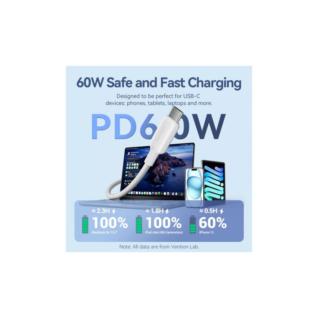 Дата кабель USB-C to USB-C 1.0m 60W white VENTION (TRCWF)