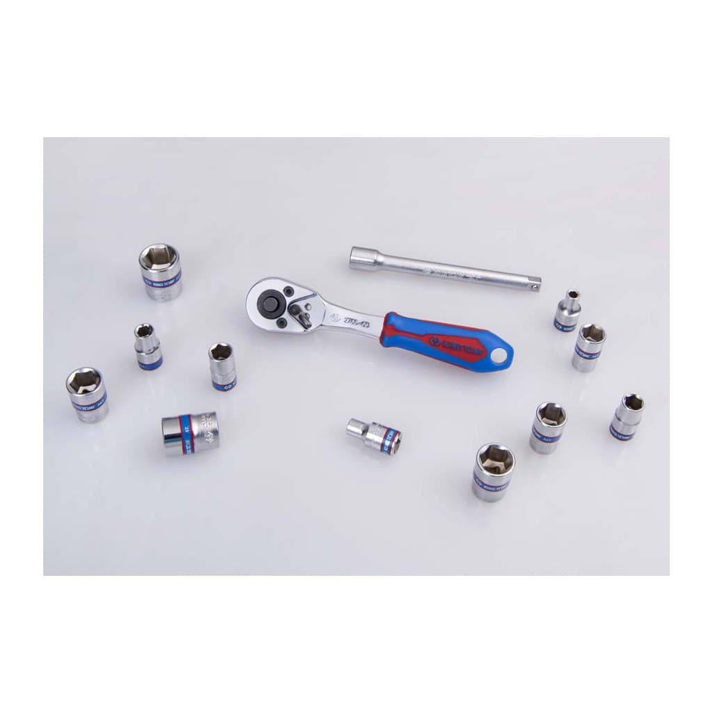 стандартна (коротка), з тріскачкою, з подовжувачем, Кількість предметів - 13 шт, метрична, 1/4", шестигранник, Розмір торцевих головок, мм - 4, 5, 6, 7, 8, 9, 10, 11, 12, 13, 14, Довжина головки - 24 мм, Внутрішня глибина - 7 мм, 8 мм, 9 мм
