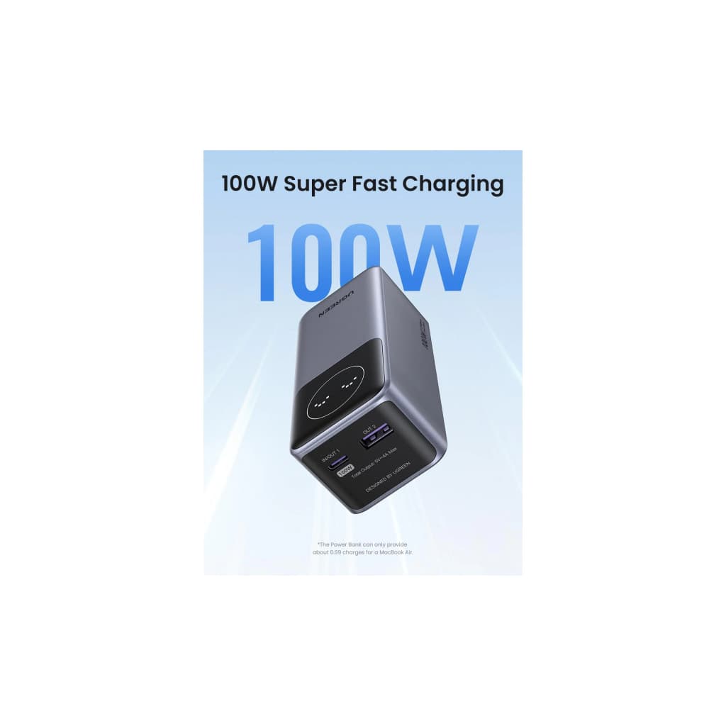 Батарея універсальна Ugreen 12000mAh 100W PD, QC, USB-A, USB-С in/out Grey (PB724) (35526B)