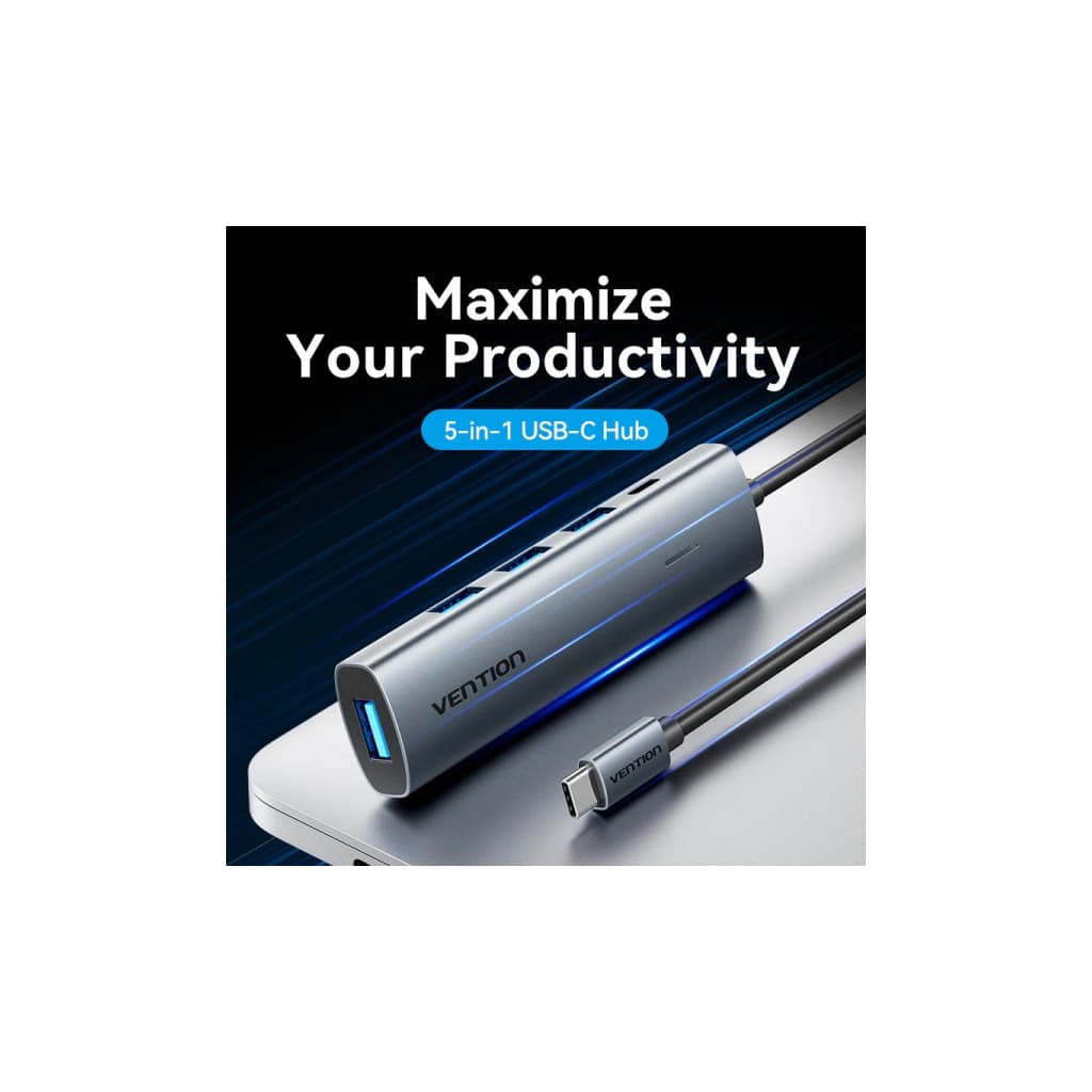 Концентратор VENTION USB-C to 4xUSB 3.0 + 1xUSB-C black (TGZHB)