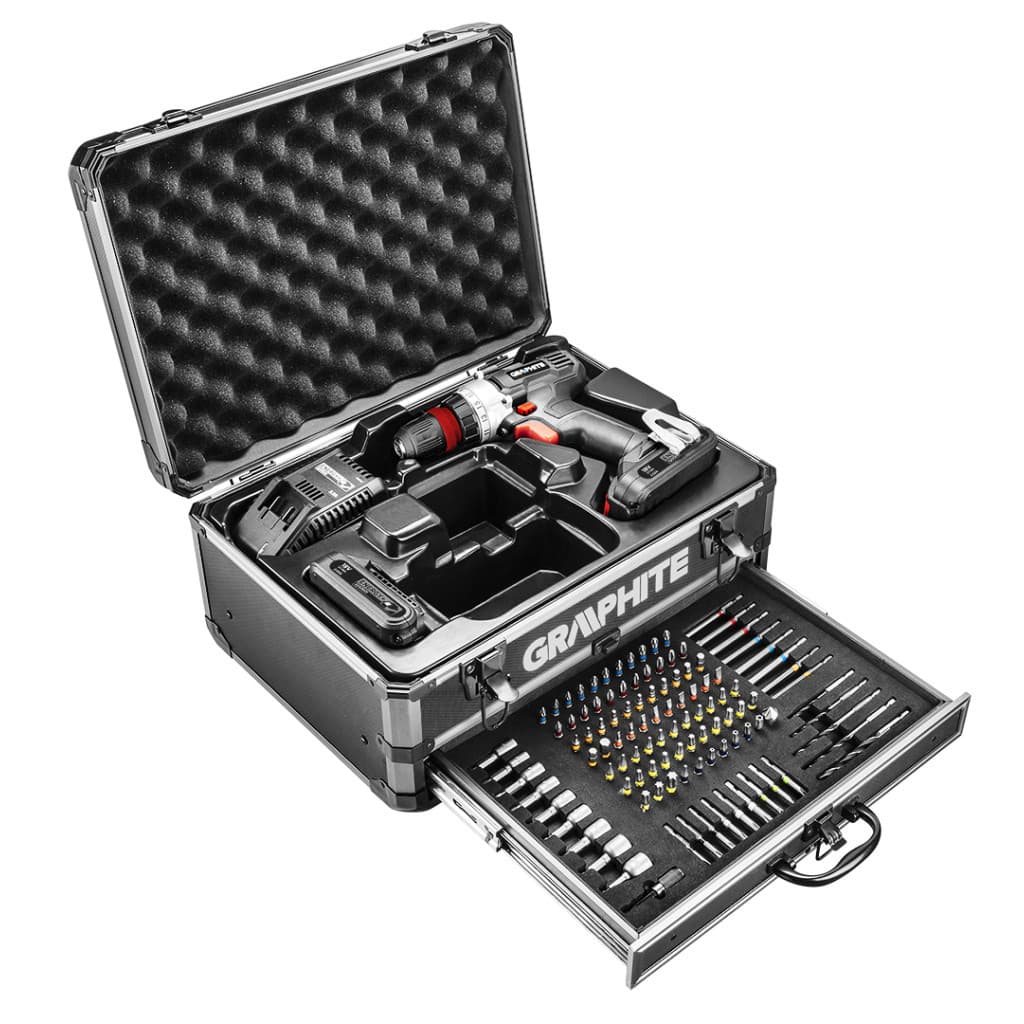 Шуруповерт Graphite Energy + SET, 18В, 2х2.0 Ач, 109ед. кейс (58G022-PS15)