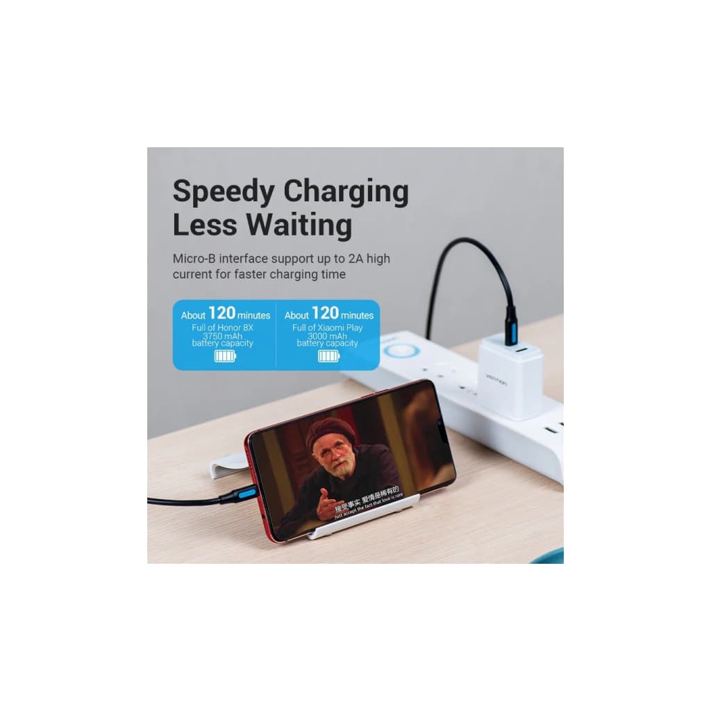 Дата кабель USB-C to Micro 5P 1.5m 10W black VENTION (COVBG)