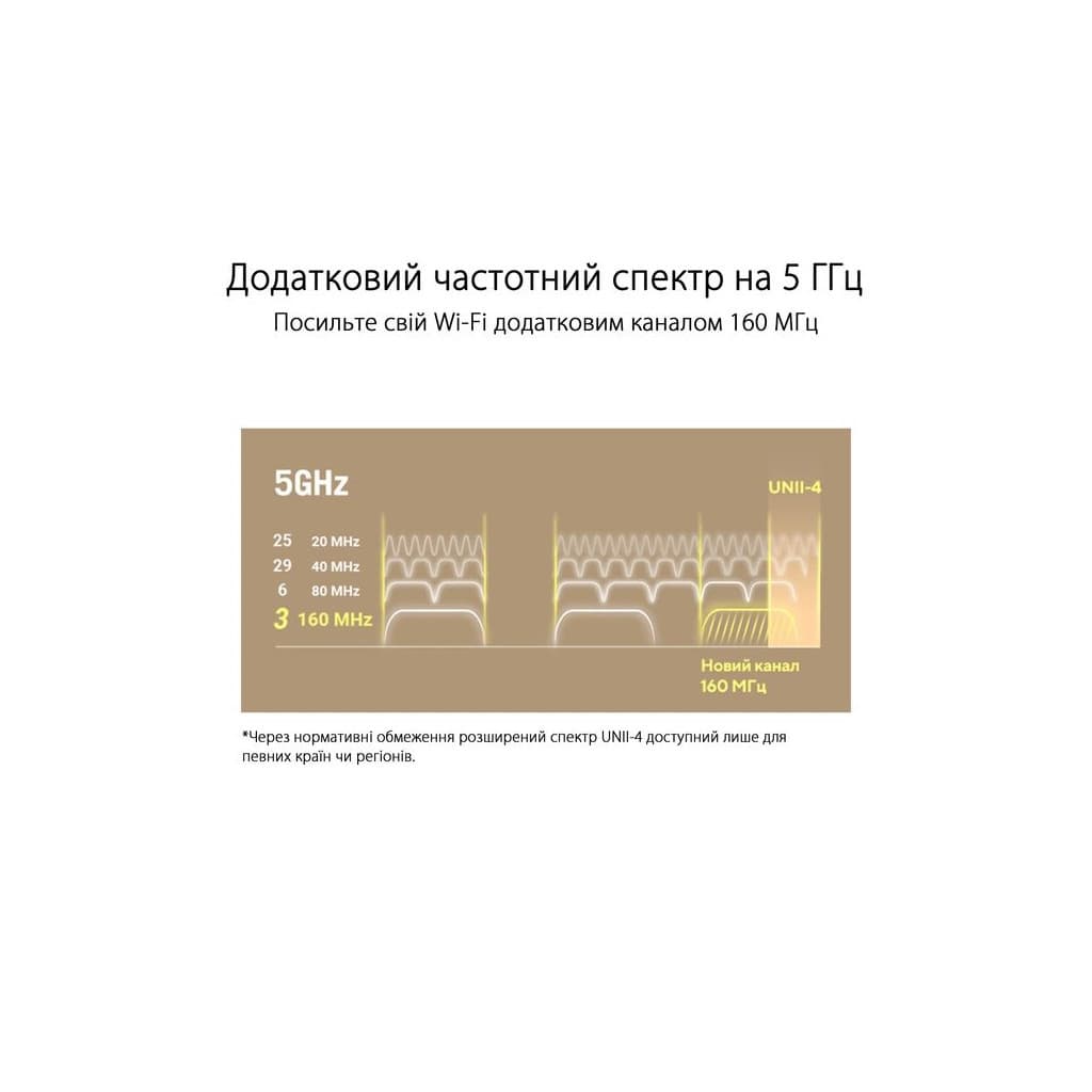 n (до 400 Мбіт/с), ax (5 ГГц, до 4.8 Гбіт/c), ax (5 ГГц, до 2.4 Гбіт/c), ax (2.4 ГГц, до 1.3 Гбіт/c), ax (2.4 ГГц, до 450 Мбіт/c), a (до 54 Мбіт/с), b (до 11 Мбіт/с), g (до 54 Мбіт/с), 4804 Мбіт/с, 2.4 / 5 ГГц, вбудовані, Антен - 6, WPA, WPA2, WPS, WPA3, USB 3G/4G, 10/100/1000/2500 BASE-T Ethernet, LAN - 3, 2 х USB 3.2, фільтрація MAC-адрес, демілітаризована зона (DMZ), захист від DDoS-атак, VPN - так, 1 шт