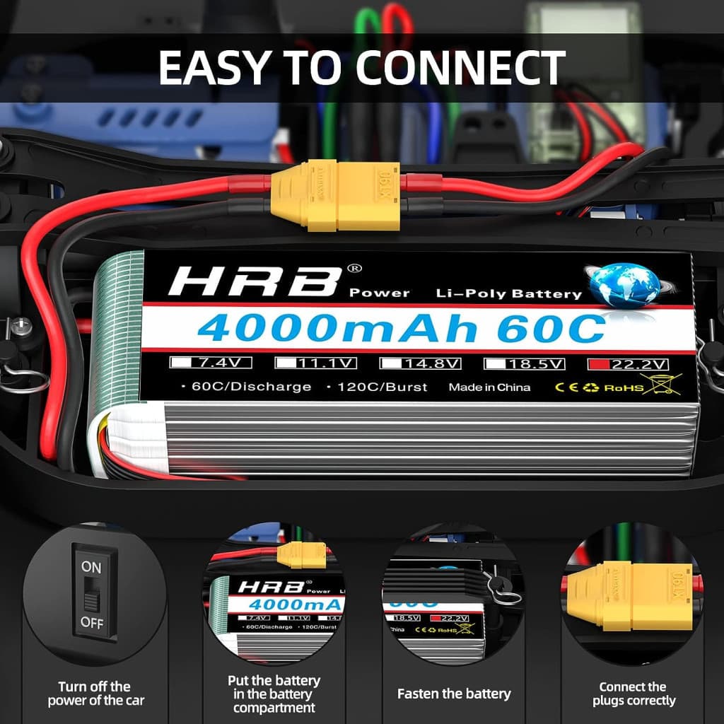 Акумуляторний блок HRB_ Lipo 6s 22.2V 4000mAh 60C Battery XT60 Plug (HR-4000MAH-6S-60C-XT60)