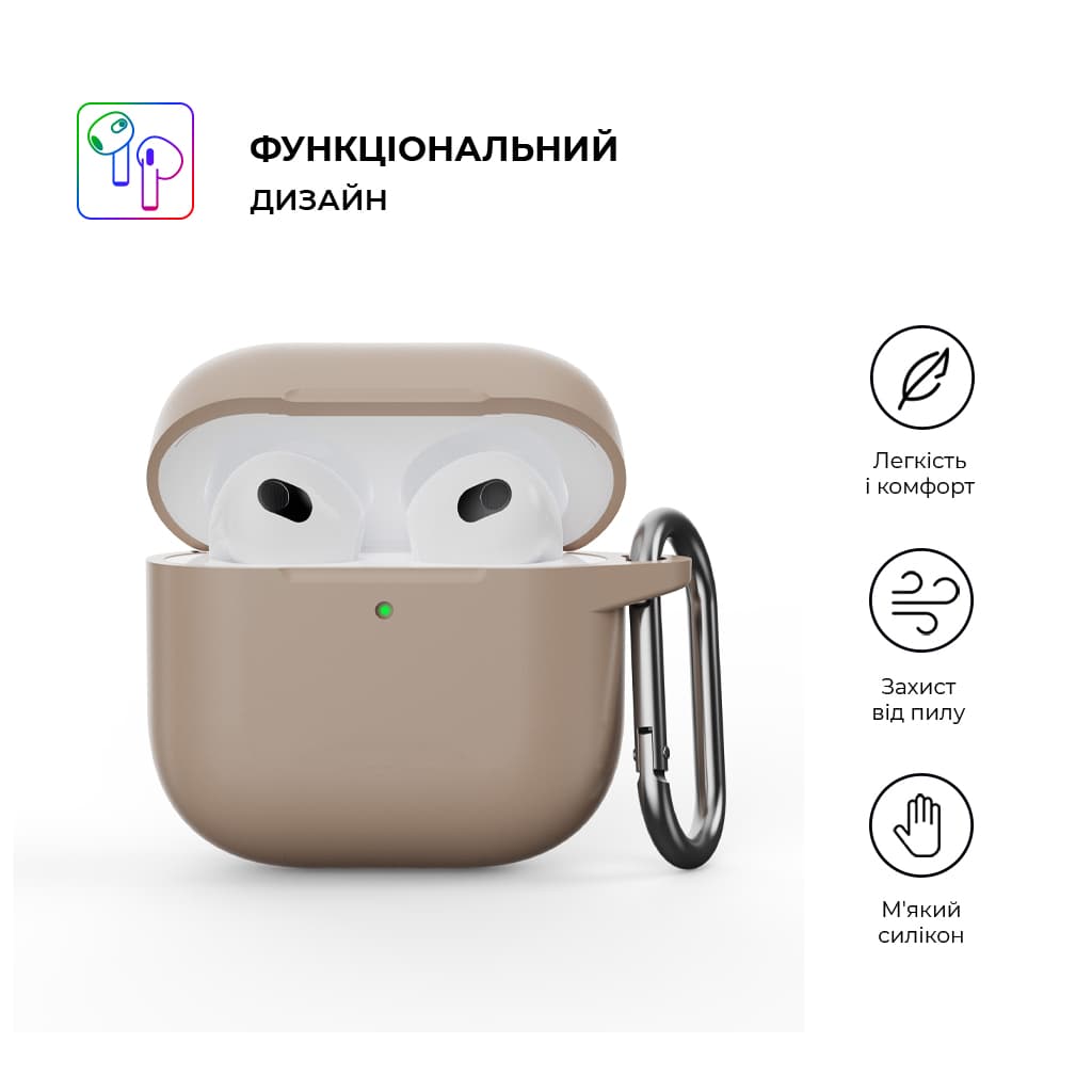 Сумісність з брендом - Apple, AirPods 4, карабін, Колір - коричневий