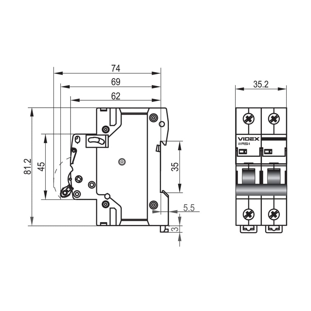 Автоматичний вимикач Videx RS4 RESIST 2п 63А С 4,5кА (VF-RS4-AV2C63)
