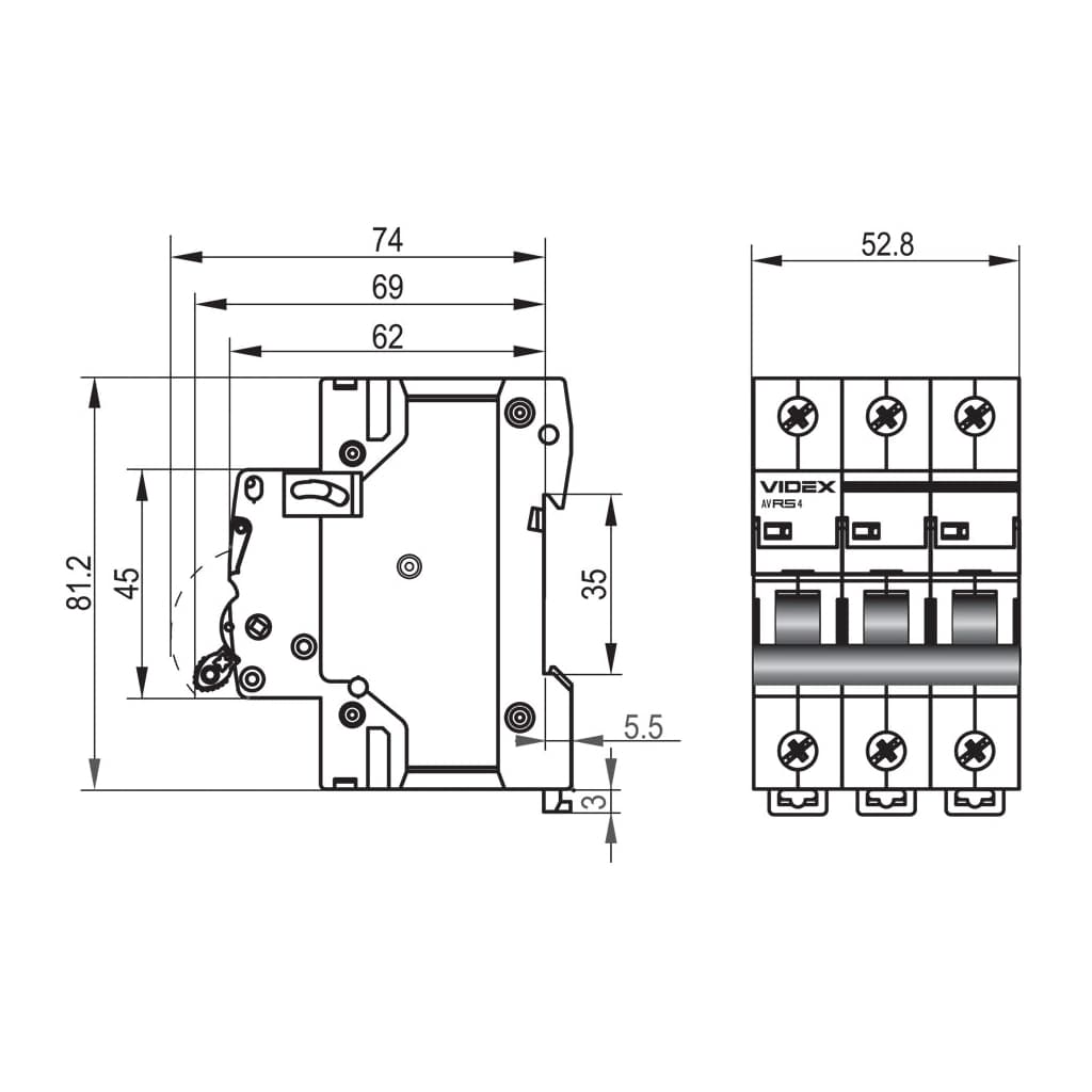 Автоматичний вимикач Videx RS4 RESIST 3п 63А С 4,5кА (VF-RS4-AV3C63)