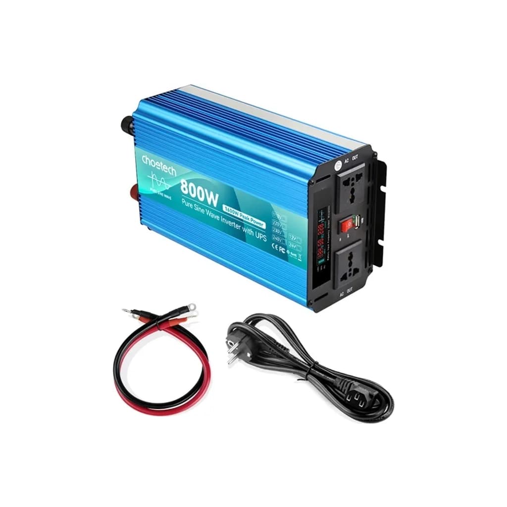 Автомобільний інвертор Choetech 12/220V 1000Вт, з функцією ДБЖ, чиста синусоїда (INV-C1000WUPS-EU)