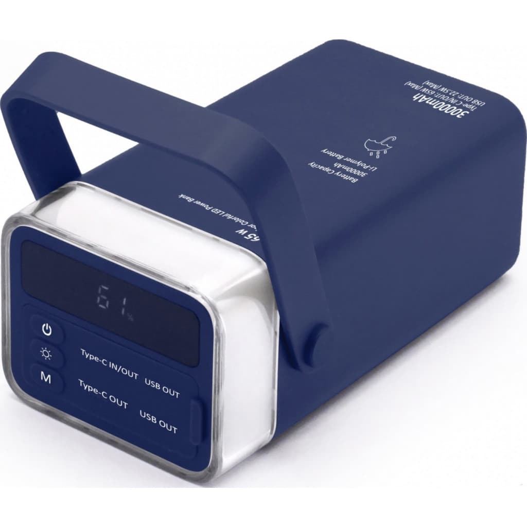 Ємність - 30000 mAh, електрохімічна система - Li-pol, Джерело заряду батареї - USB, інтерфейси підключення (вихід) - 2 х USB, 2 x USB Type-C, вихідний струм - 1.5 A, 3 A, 4.5 A, 2 A, 3.25 A, розмір - 140 х 48 х 56 мм, матеріал корпусу - пластик, вага - 865 г, Колір - синій