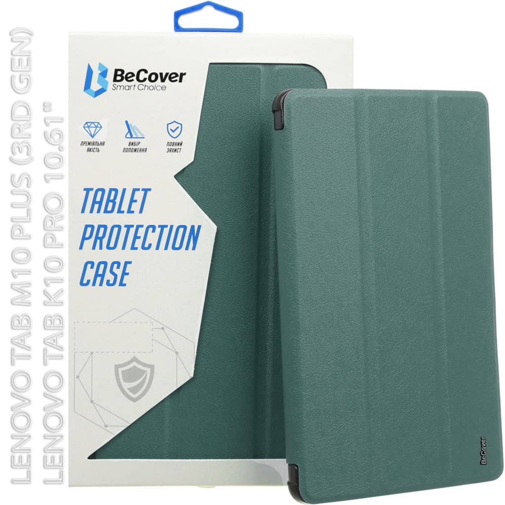 Тип - обкладинка, Сумісність з моделями - Lenovo Tab M10 Plus, діагональ - 10.61, Спосіб кріплення - обкладинка, спосіб закриття - магніт, Матеріал - поліуретан, темно-зелений