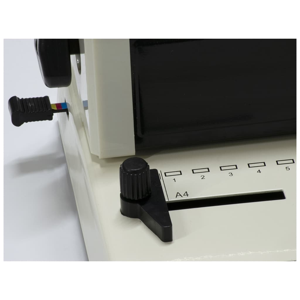 Вид переплетіння - пластикова пружина, спосіб перфорації - ручна, максимальна товщина документа - 450 аркушів, максимальний діаметр пружини - 51 мм, 390 х 270 х 180 мм, 7 кг