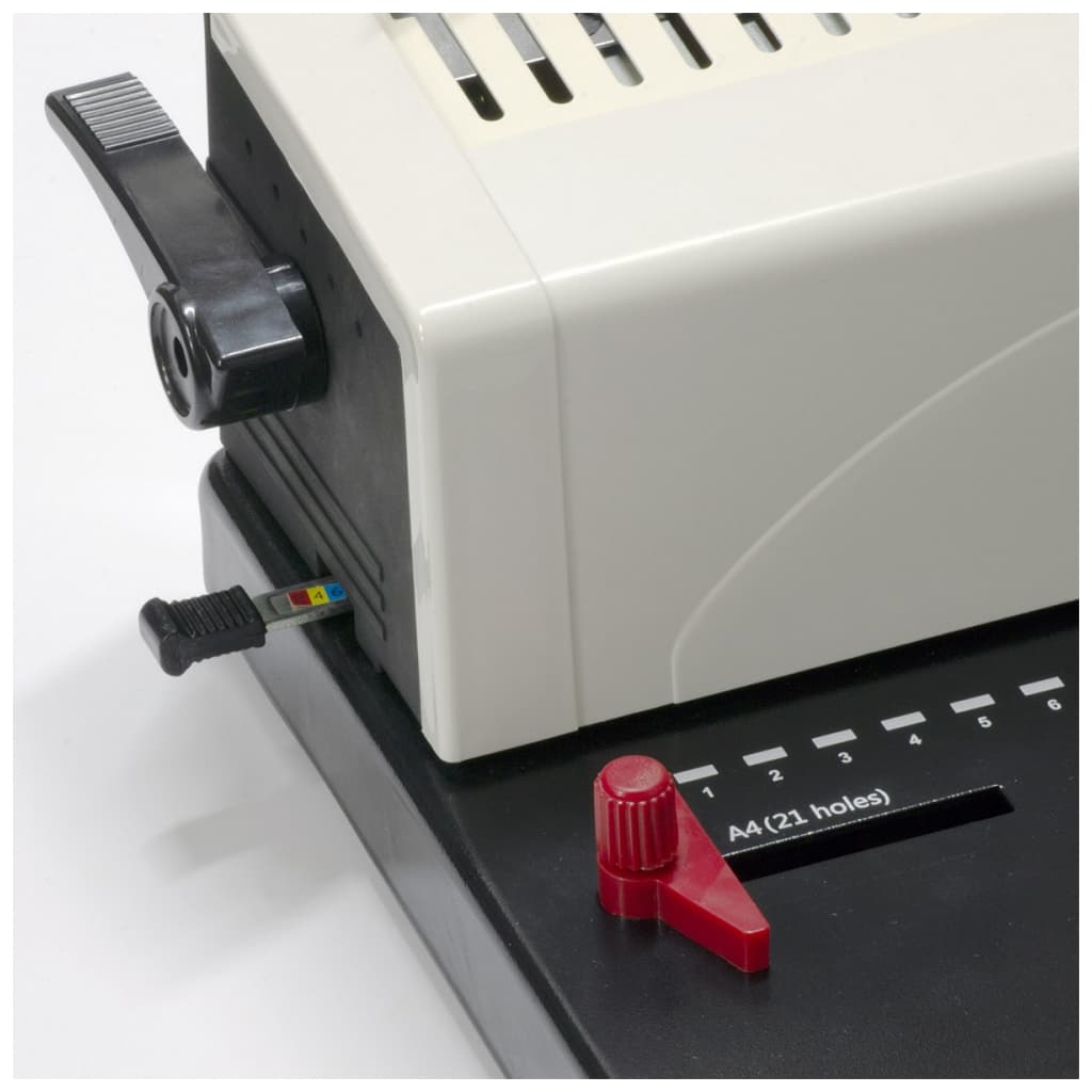 Вид переплетіння - пластикова пружина, спосіб перфорації - ручна, максимальна товщина документа - 450 аркушів, максимальний діаметр пружини - 51 мм, 400 х 320 х 200 мм, 8.5 кг