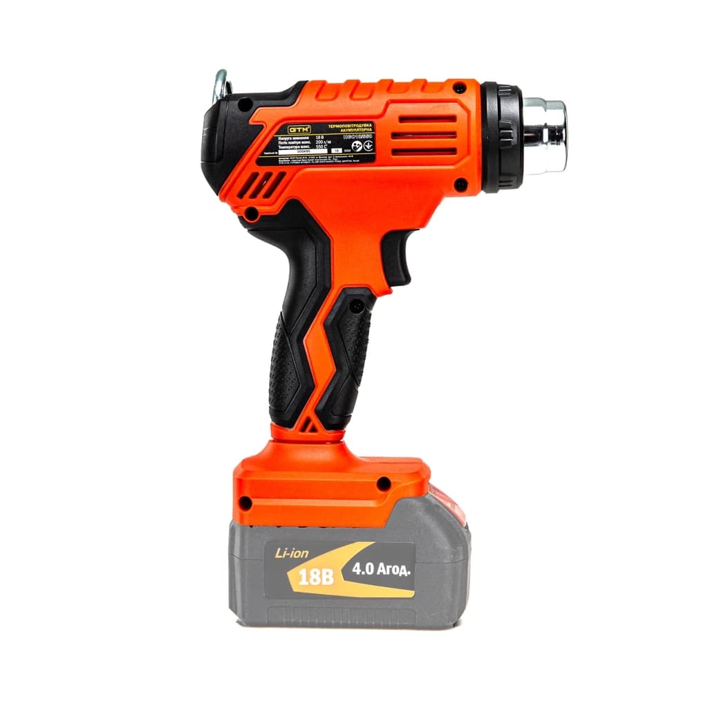 Будівельний фен GTM HGC18/550, 18V, 350/550С, 160/200л/хв (без АКБ та ЗП) (HGC18/550_BARE TOOL)