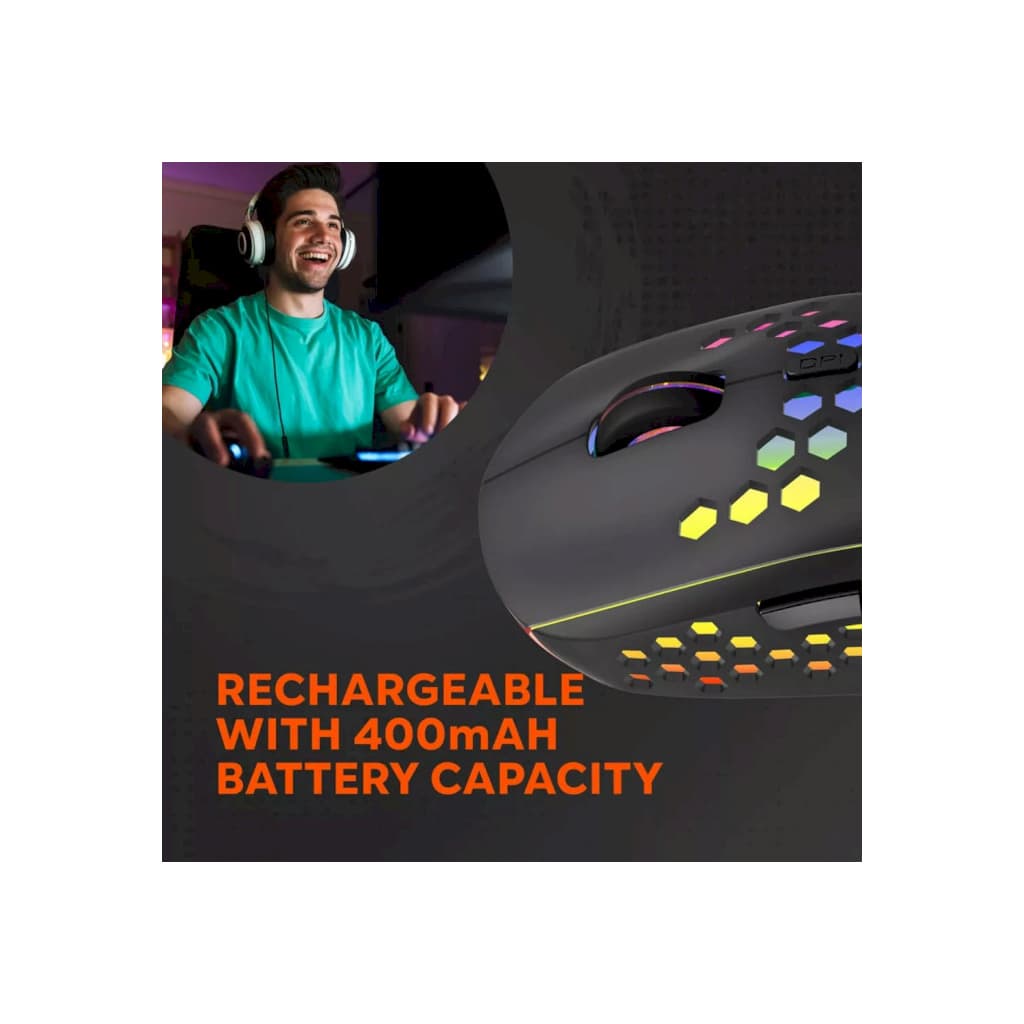 Ігрові, для ноутбука, бездротове, USB Type-C, оптичний, Сенсор - KA8, 1600 dpi, кількість кнопок - 7, акумулятор, середня, 105 х 72 х 58 мм, 95 г