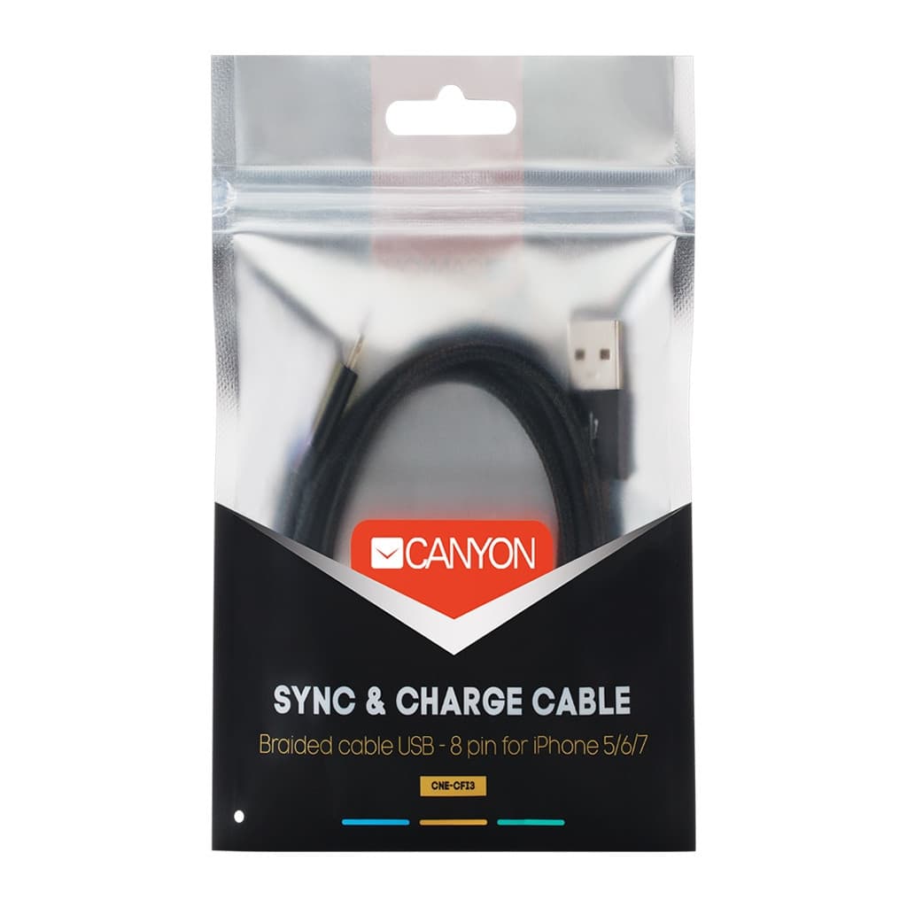 Дата кабель USB 2.0 AM to Lightning 1.0m Black Canyon (CNE-CFI3B)