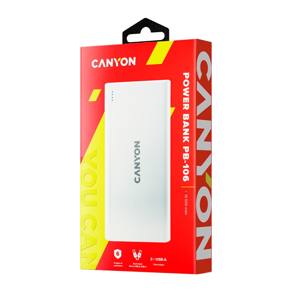 Батарея універсальна Canyon PB-106 10000mAh Input 5V/2A, Output 5V/2.1A(Max) (CNE-CPB1006W)