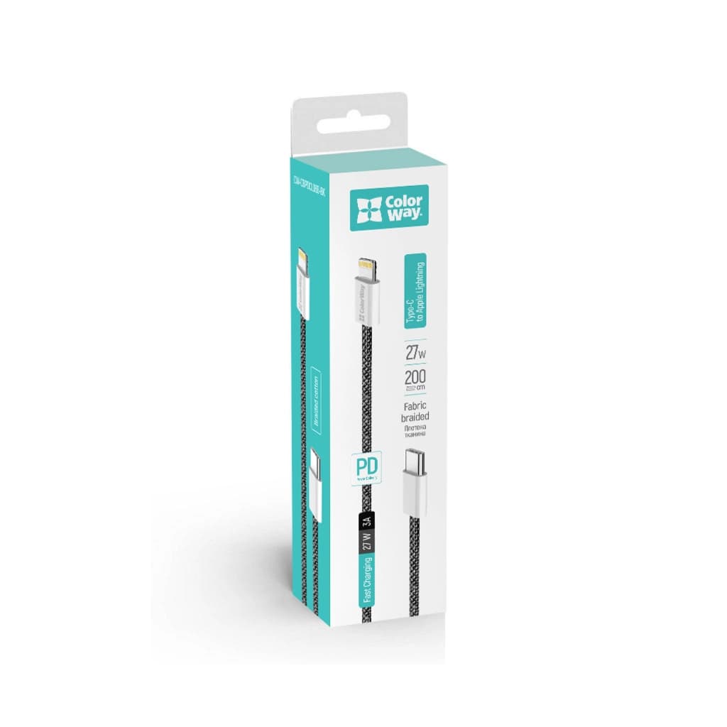 Дата кабель USB-C to Lightning 2.0m 27W PD FC black ColorWay (CW-CBPDCL068-BK)