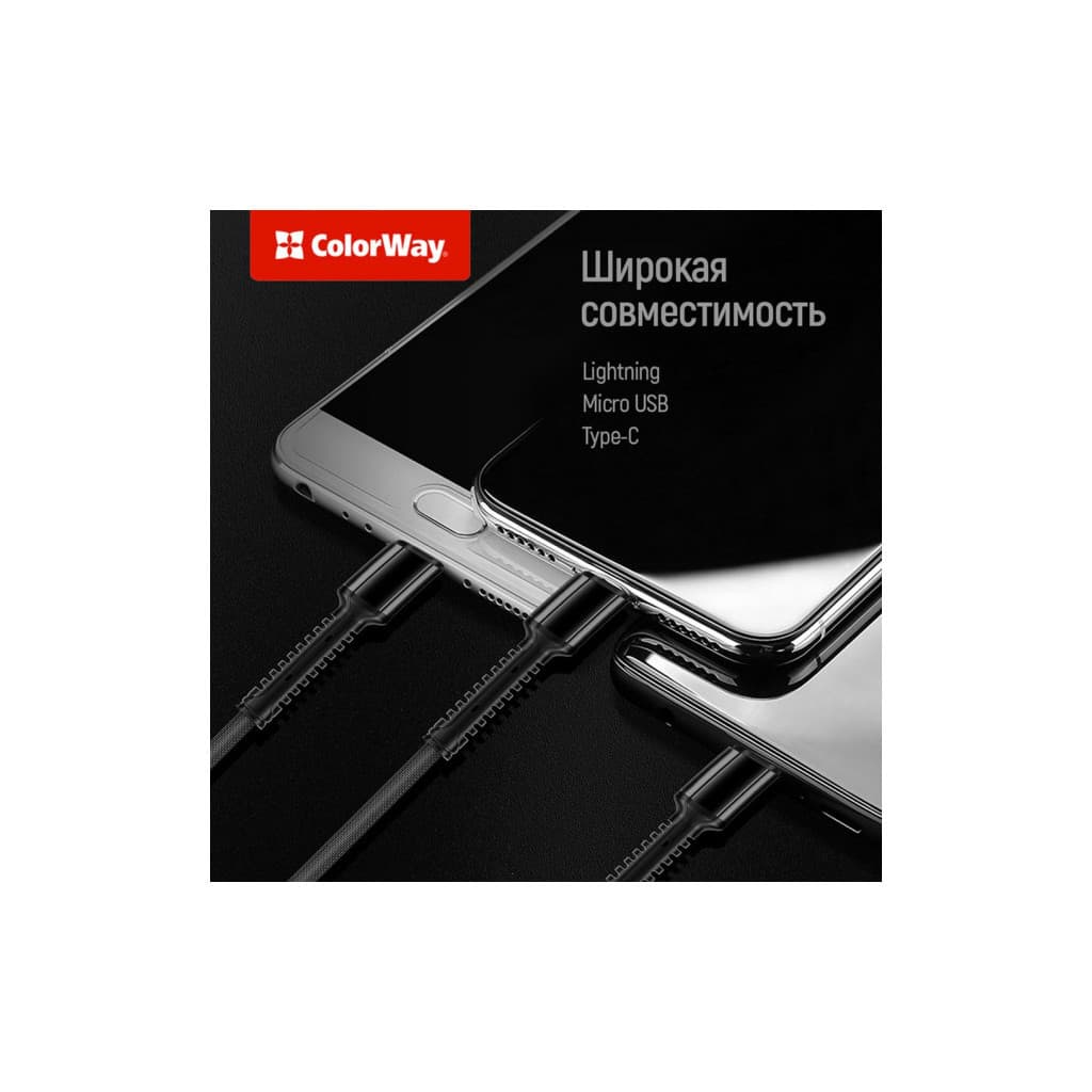 Дата кабель USB 2.0 AM to Lightning + Micro 5P + USB-C 4.0A (20W) ColorWay (CW-CBU3003-GR)
