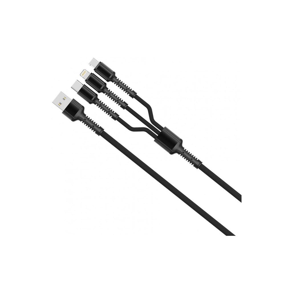 Тип - кабель, Тип конектора 1 - USB 2.0, Тип конектора 2 - micro USB, Lightning, USB Type-C, довжина - 1 м, 3 конектори в одному, Колір - чорний