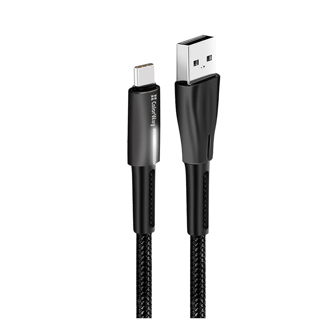 Дата кабель USB 2.0 AM to USB-C 1.0m zinc alloy + led black ColorWay (CW-CBUC035-BK)