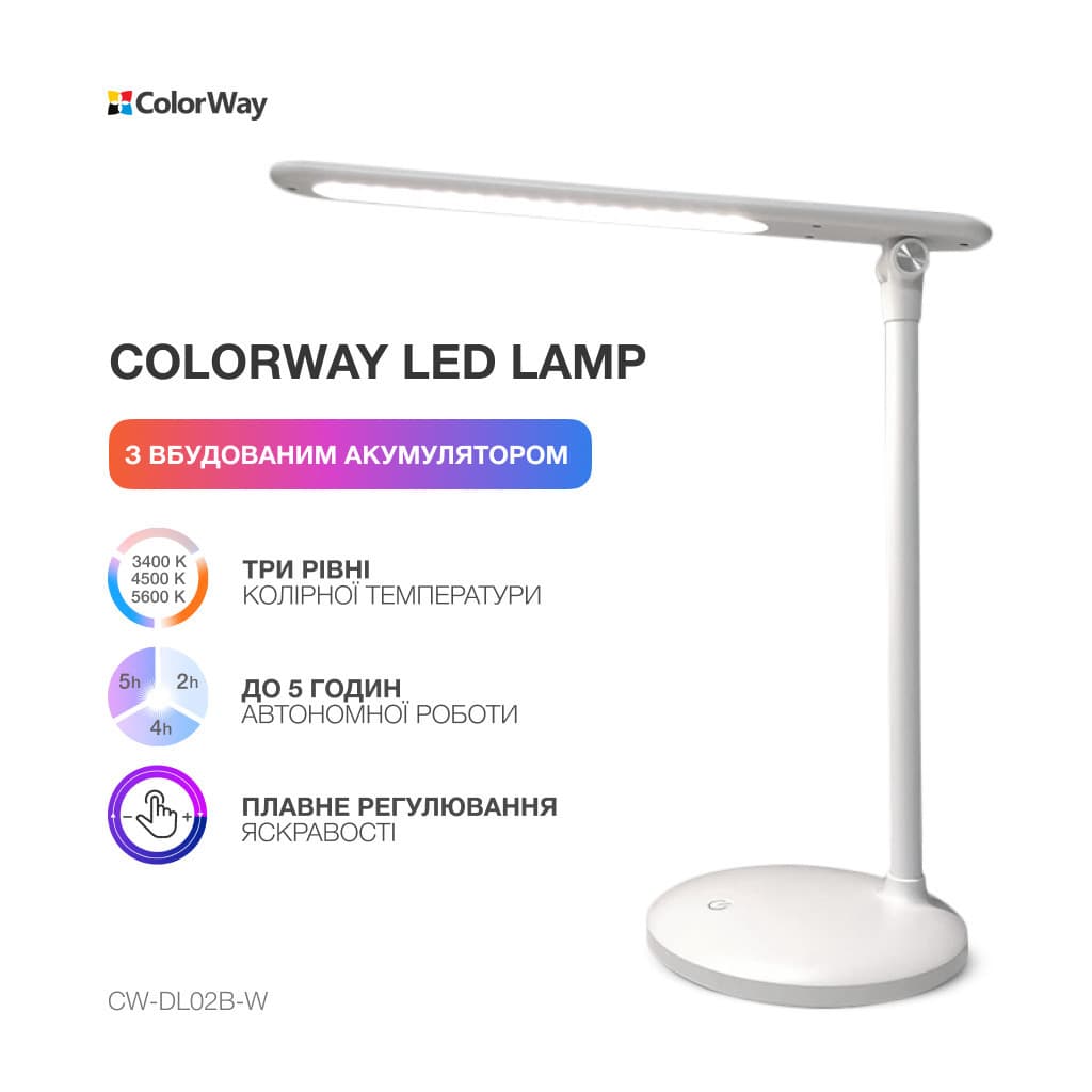 Настільна лампа ColorWay 4W з вбудованим акумулятором 1800 mAh USB in/out 5V*1A, white (CW-DL02B-W)