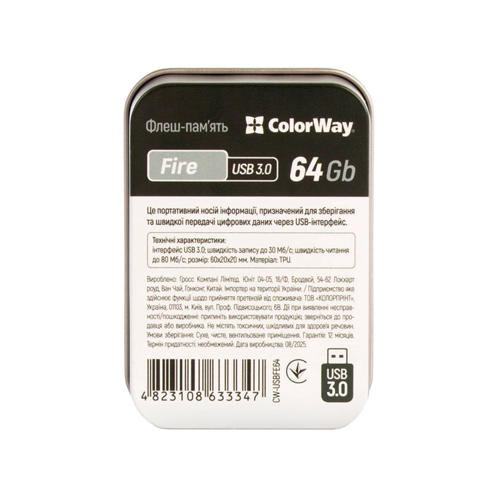 USB флеш накопичувач ColorWay Fire 64 GB USB 3.0 Red (CW-USBFE64)