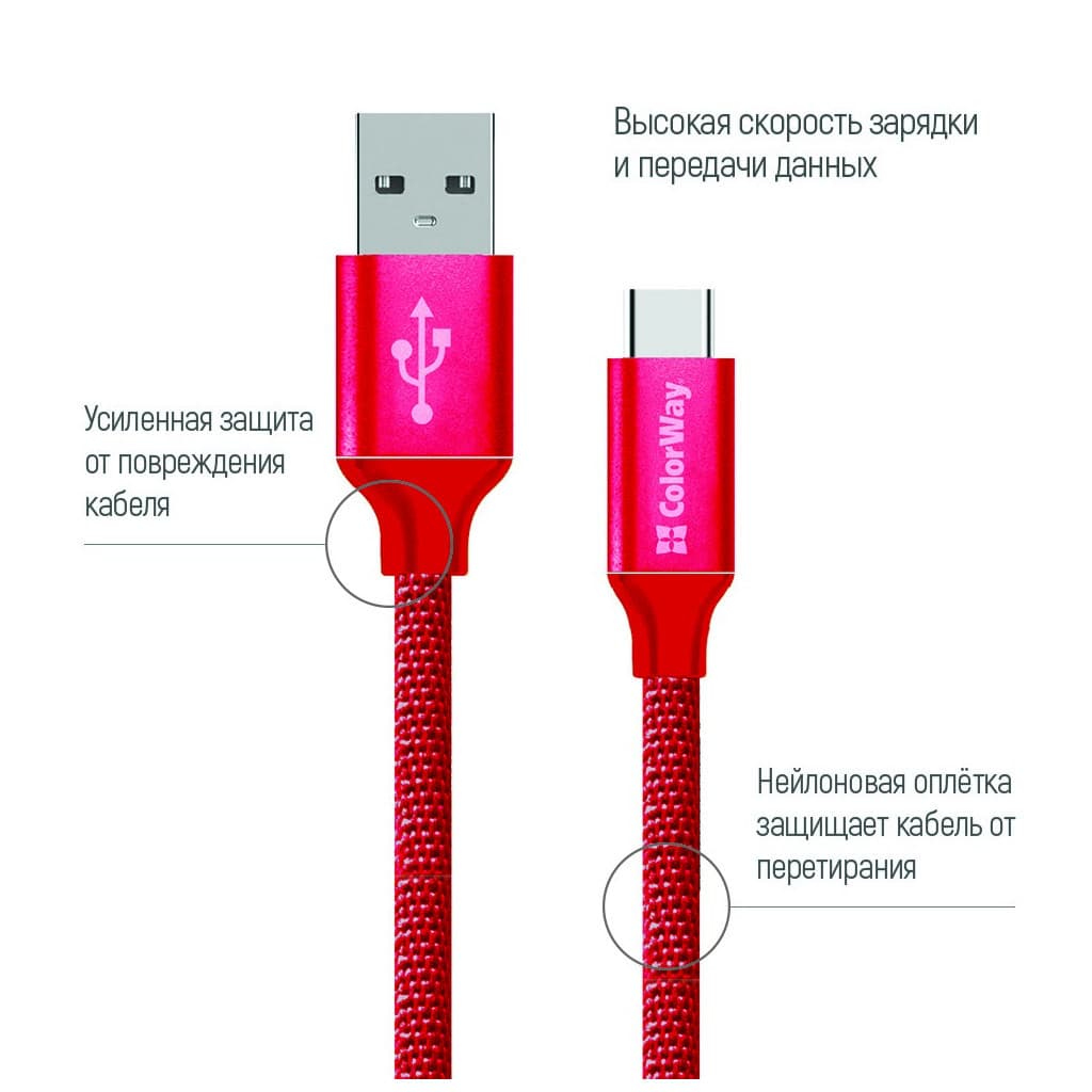 Дата кабель USB 2.0 AM to USB-C 1.0m 2.1А red ColorWay (CW-CBUC003-RD)