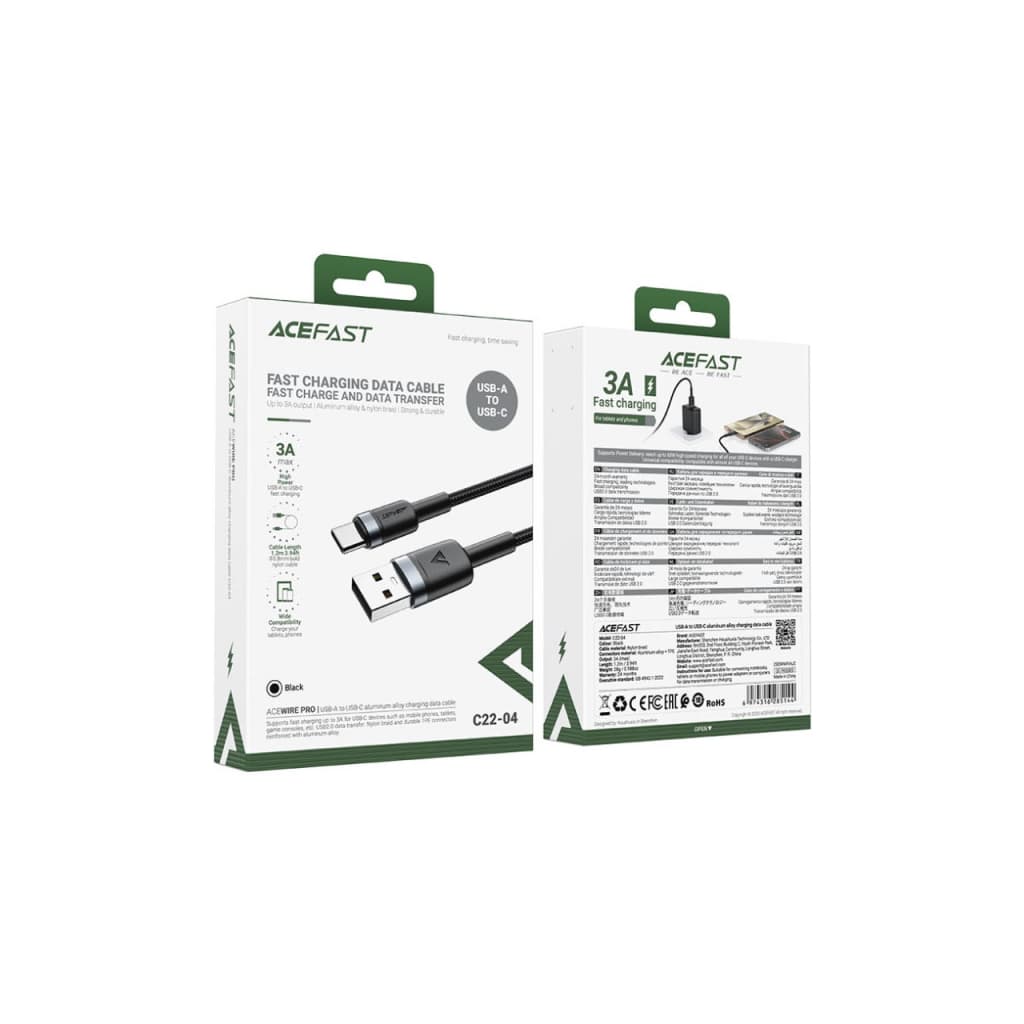 Дата кабель USB 2.0 AM to USB-C 1.2m 60W black Acefast (6974316285144)