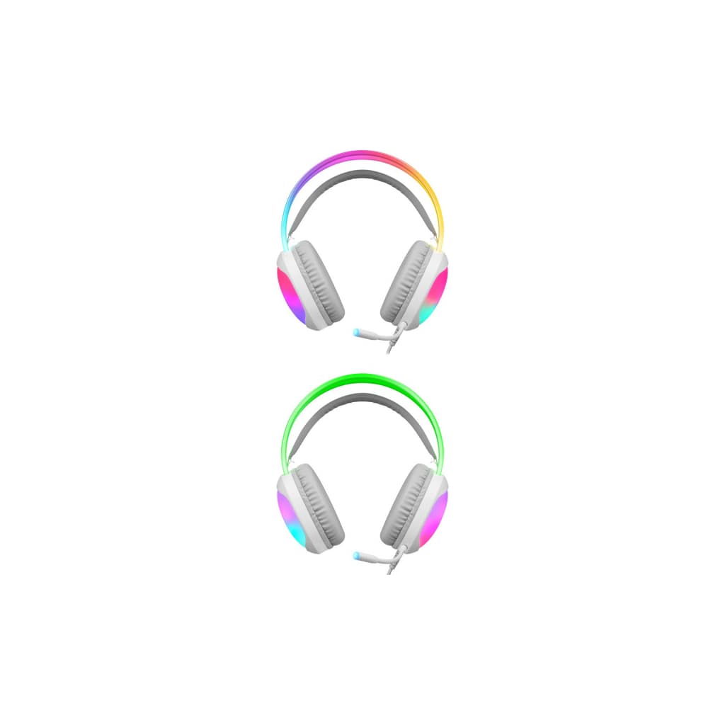 геймерські (ігрові), дротове, Jack 3.5 мм, USB Type-A, закриті, 18 Ом, чутливість - 112 дБ, 20 - 20000 Гц, з мікрофоном, Матеріал амбушур - шкірозамінник, довжина шнура - 2 м, кількість jack(ів) - 2, White, 0.3 кг