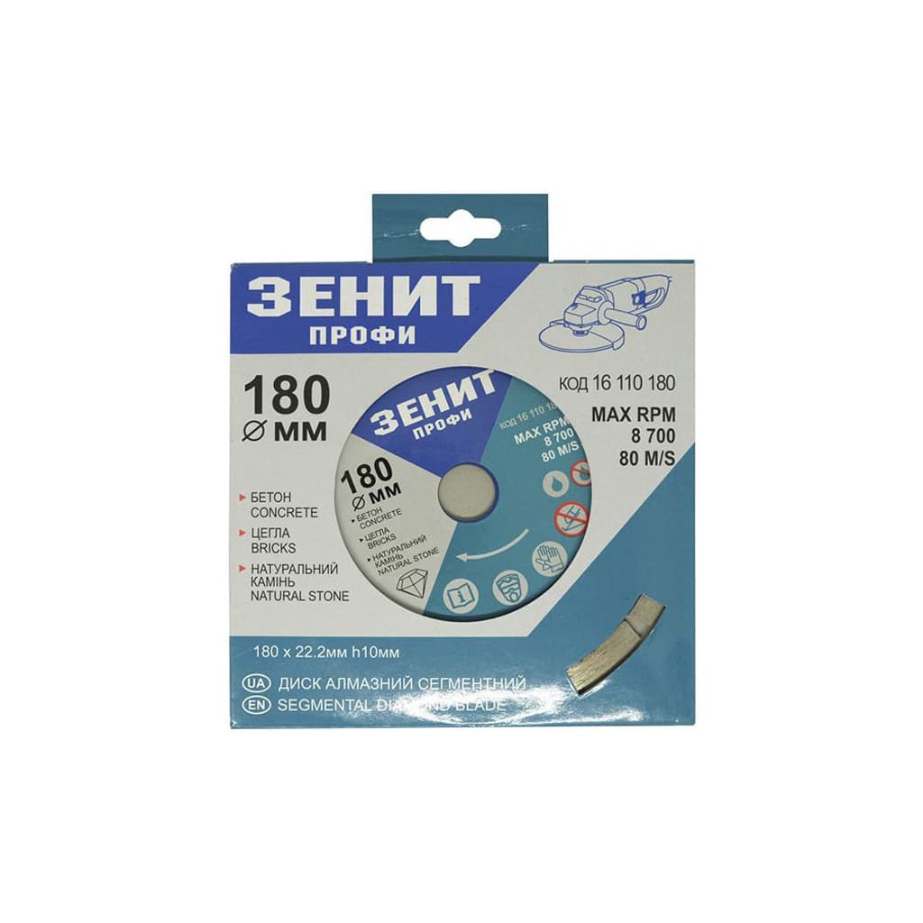 Диск пильний Зеніт "ПРОФІ" алмазний сегментний 180x10 мм (16110180)