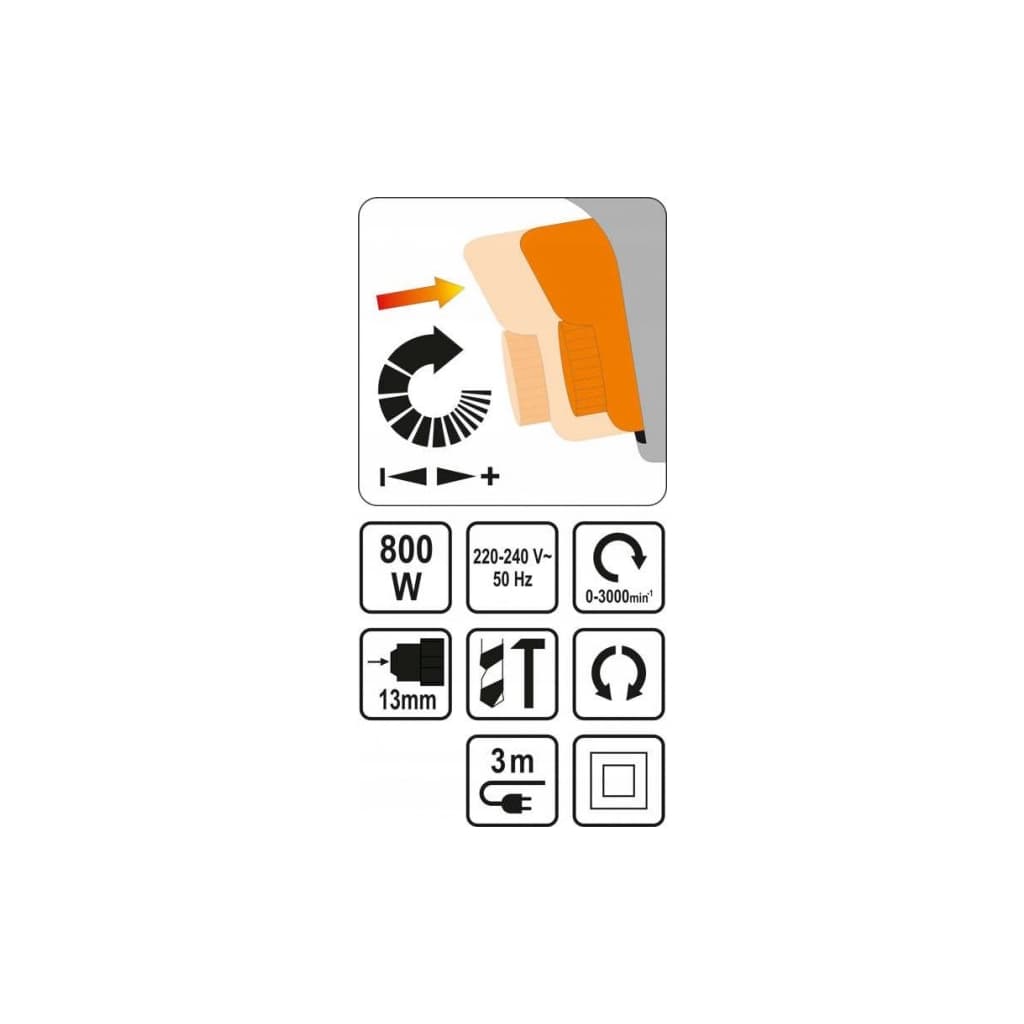 побутовий, швидкозатискний, 13 мм, 3000 об/хв, 800 Вт, мережа, 2 кг