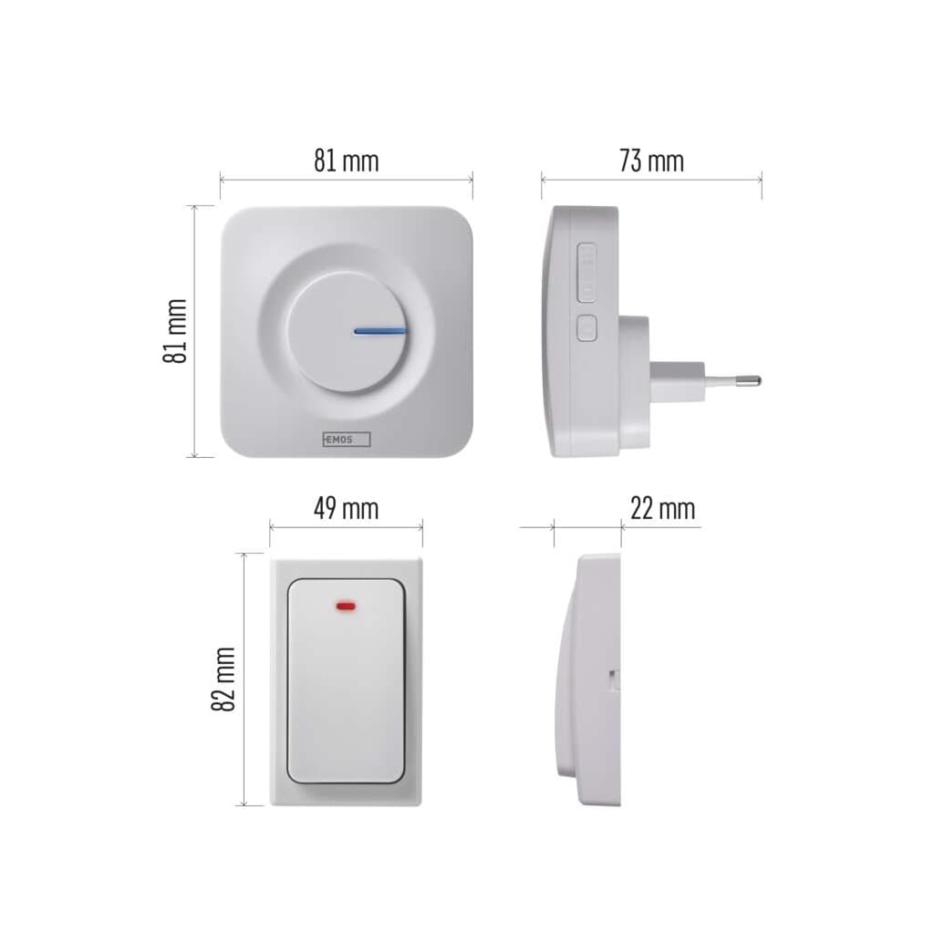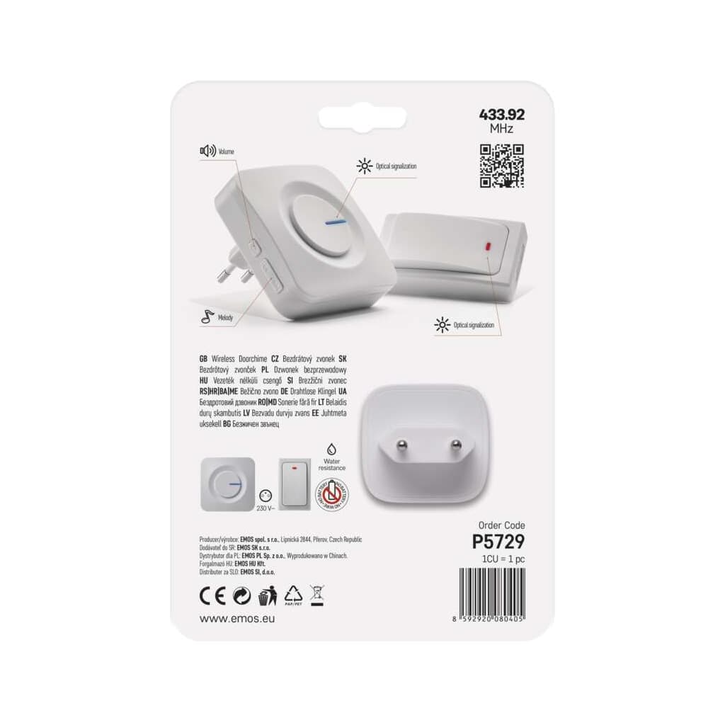 Дверний дзвінок EMOS бездротовий P5729 живлення від мережі 220В з кнопкою BATTERY-FREE (P5729)