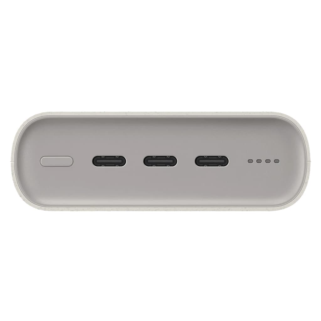 Ємність - 20000 mAh, електрохімічна система - Li-pol, Джерело заряду батареї - USB, інтерфейси підключення (вихід) - 3 x USB Type-C, вихідний струм - 3 A, розмір - 152 х 76 х 25.5 мм, вага - 402 г, Колір - бежевий