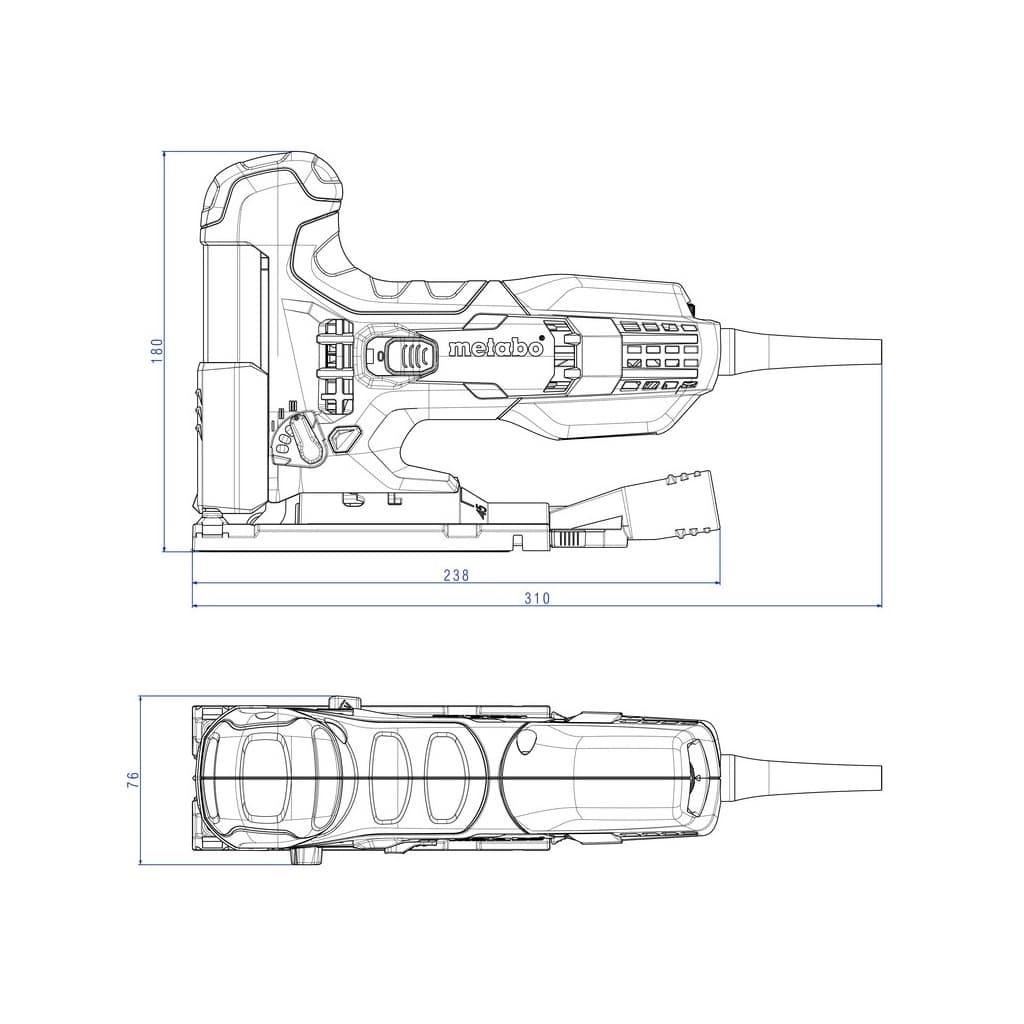 споживана потужність - 470 Вт, частота ходу пильного полотна - 1000 - 3100 об/хв, хід пилки - 22 мм, глибина пропила в деревині - 100 мм, кут нахилу лобзика (опорної платформи) - 45°, живлення - мережа, вага - 2 кг