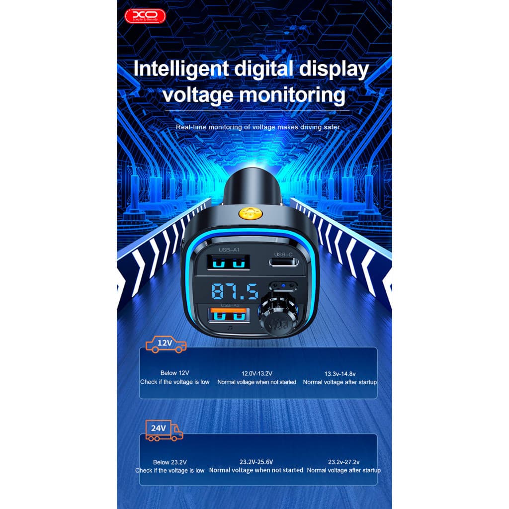 FM модулятор XO BCC08 автомобільний зарядний пристрій MP3/PD/2USB/3,1A Чорни (XO-BCC08)