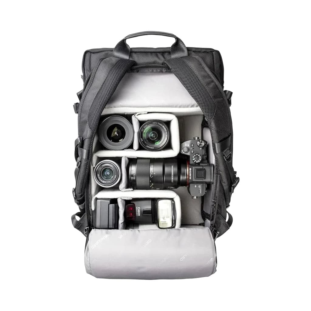 Тип - рюкзак, Призначення - для дзеркальних фотокамер, для відеокамер, для компактних фотокамер, для об'єктивів, для спалахів, для аксесуарів, для фотокамер миттєвого друку, Матеріал - текстиль, Колір - чорний