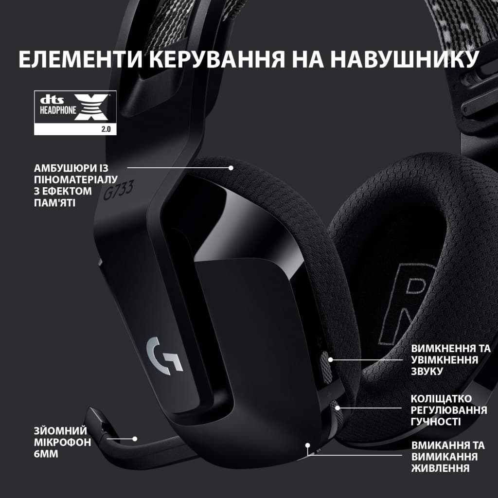 Навушники Logitech G733 Lightspeed Wireless RGB Gaming Headset Black (981-000864)