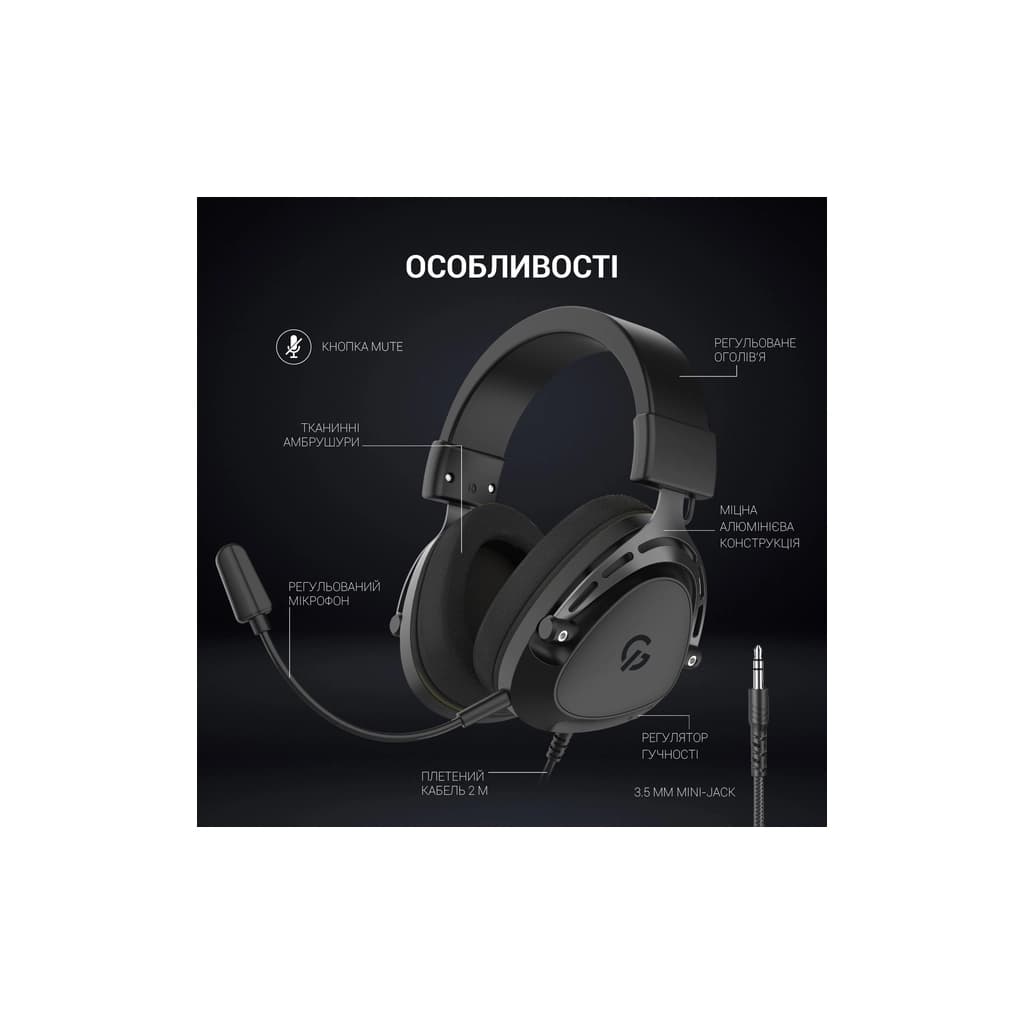 геймерські (ігрові), дротове, Jack 3.5 мм, закриті, Випромінювач - 50 мм, 32 Ом, чутливість - 110 дБ, 20 - 20000 Гц, тип випромінювача - динамічний, з мікрофоном, Спрямованість мікрофона - всеспрямований, Матеріал амбушур - тканина, довжина шнура - 2 м, Black, 235 г