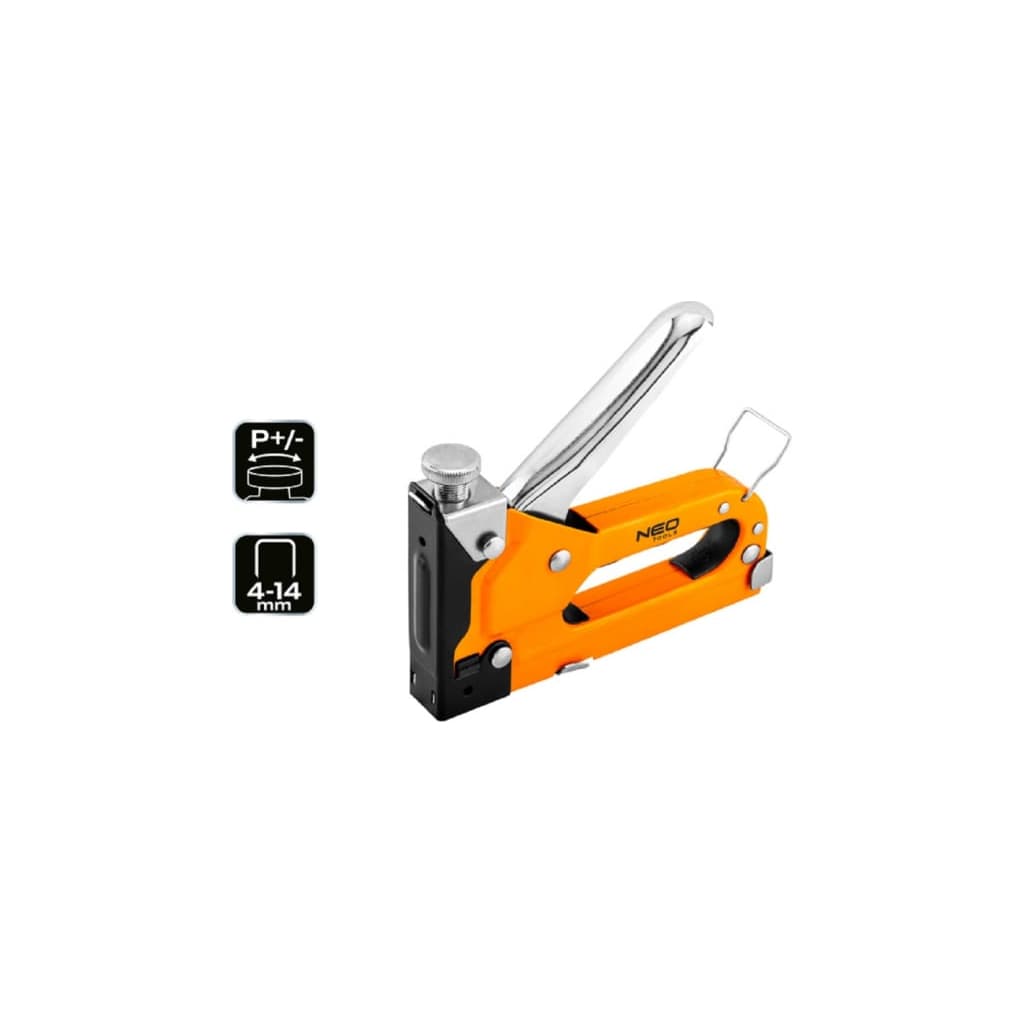 Степлер будівельний Neo Tools 4-14 мм, тип скоб J/53, регулювання забивання скоб (16-032)