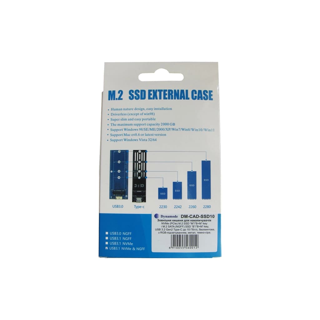 Кишеня зовнішня Dynamode M.2 SSD NVMe/SATA combo USB3.2 GEN2 Type-C aluminium black (DM-CAD-SSD10)