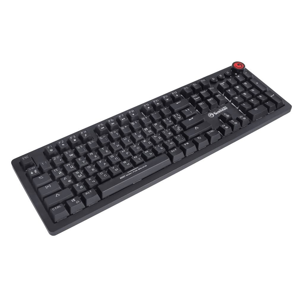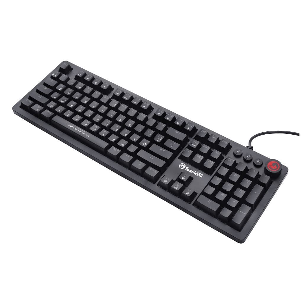 ігрова, для ПК, механічна, дротова, USB, повнорозмірна, Підсвічування - так, російська, англійська, Перемикачі (Switches) - Outemu Blue, Клавіш - 107, з регулюванням гучності, Шнур - 1.6 м, 450 х 140 х 35 мм, 750 г