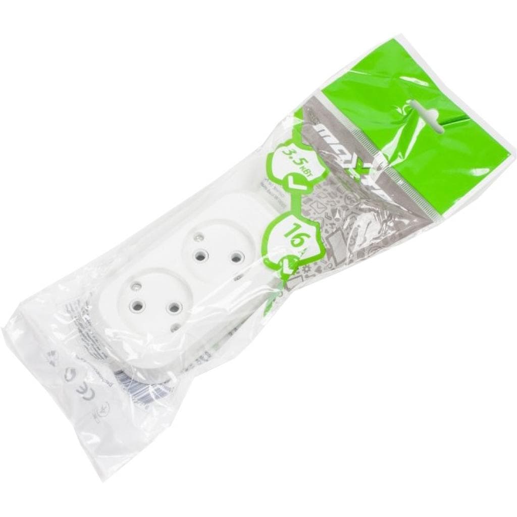 Кількість розеток - 2, Заземлення - без заземлення, Максимальний струм - 16 А, Колір - білий