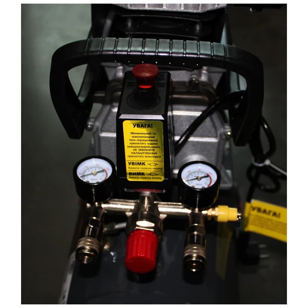 пересувний, 50 л, 360 л/хв, однофазний (220/230 В), 2.2 кВт, 8 бар, Кількість циліндрів - 2, ручка для транспортування, кнопка включення/вимикання, манометр, 720 х 700 х 350 мм