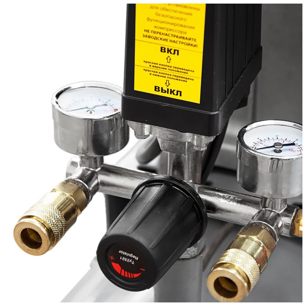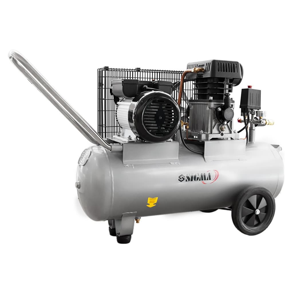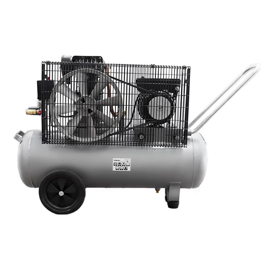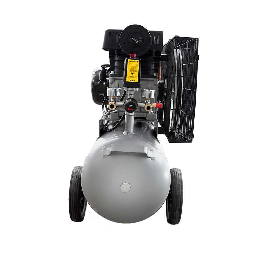 пересувний, 50 л, 2.5 кВт, 335 л/хв, Кількість циліндрів - 2, 10 бар, однофазний (220/230 В), 98 дБ, ручка для транспортування, кнопка включення/вимикання, манометр, 945 х 720 х 385 мм