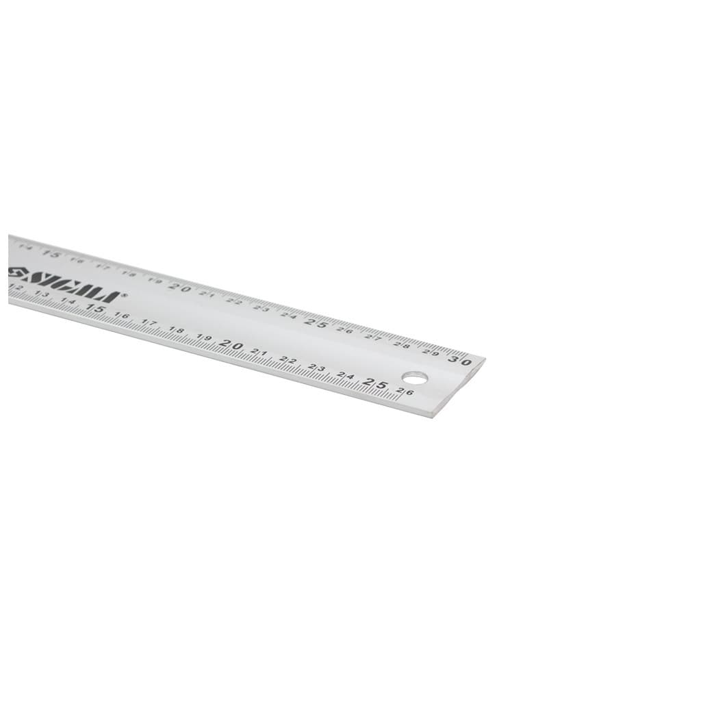 Матеріал - алюміній, шкала вимірювання - одностороння, одиниці виміру - метрична система, довжина лінійки - 300 мм, ширина лінійки - 40 мм