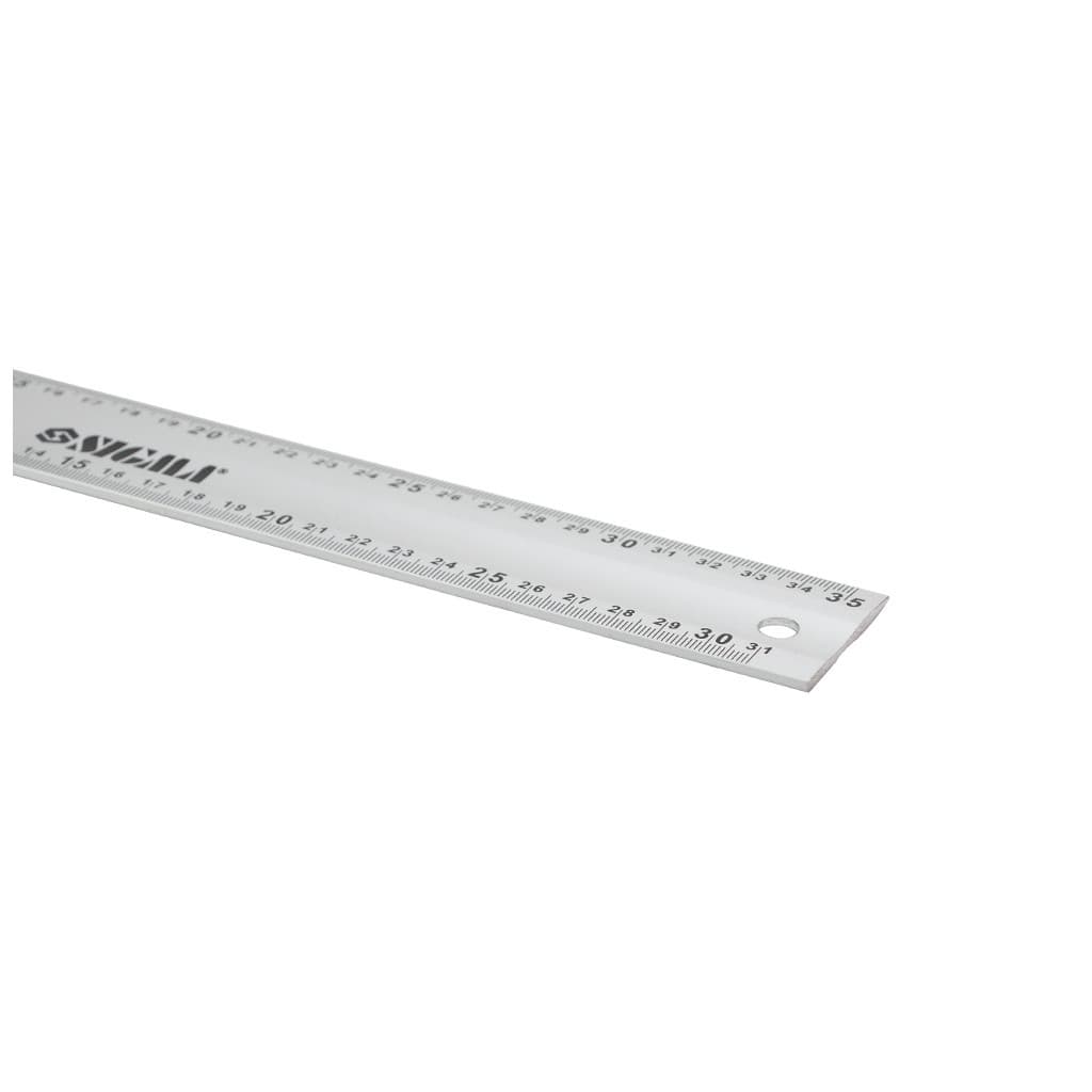 Матеріал - алюміній, шкала вимірювання - одностороння, одиниці виміру - метрична система, довжина лінійки - 350 мм, ширина лінійки - 40 мм