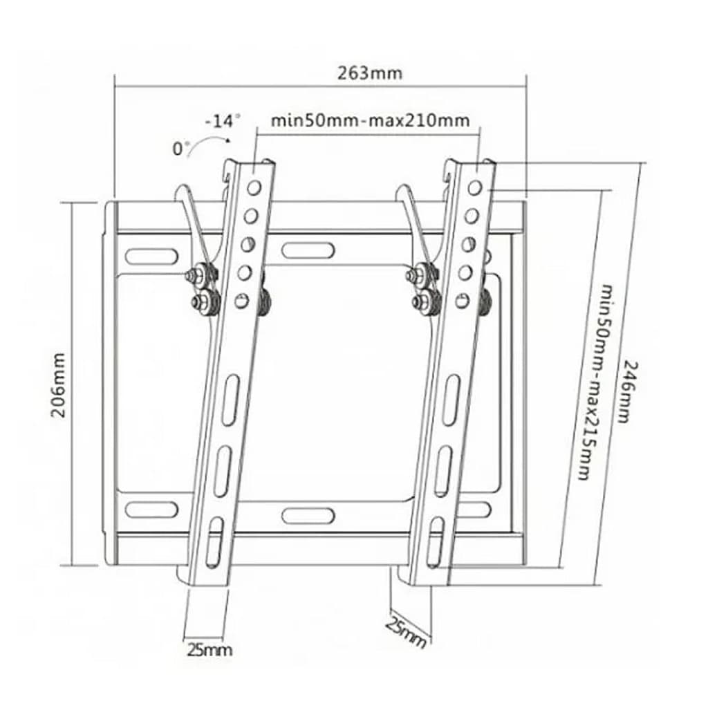 для монітора, для телевізора, Тип - похилий, кількість ступенів свободи - 1, мінімальна підтримувана діагональ - 23", максимальна підтримувана діагональ - 42", VESA - 75 x 75, 100 x 100, 200 x 100, 200 x 200, Максимальне навантаження - 35 кг, Нахил - 0°~-14°, відстань до стіни - 25мм, чорний