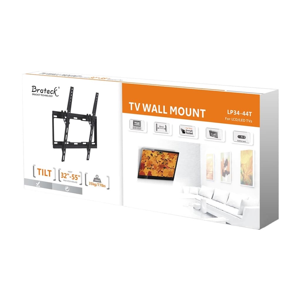 для телевізора, Тип - похилий, кількість ступенів свободи - 1, мінімальна підтримувана діагональ - 32", максимальна підтримувана діагональ - 55", VESA - 100 x 100, 100 x 300, 150 x 100, 200 x 100, 200 x 200, 300 x 200, 200 x 400, 300 x 300, 400 x 200, 400 x 300, 400 x 400, Максимальне навантаження - 35 кг, Нахил - 14°, відстань до стіни - 25мм, чорний